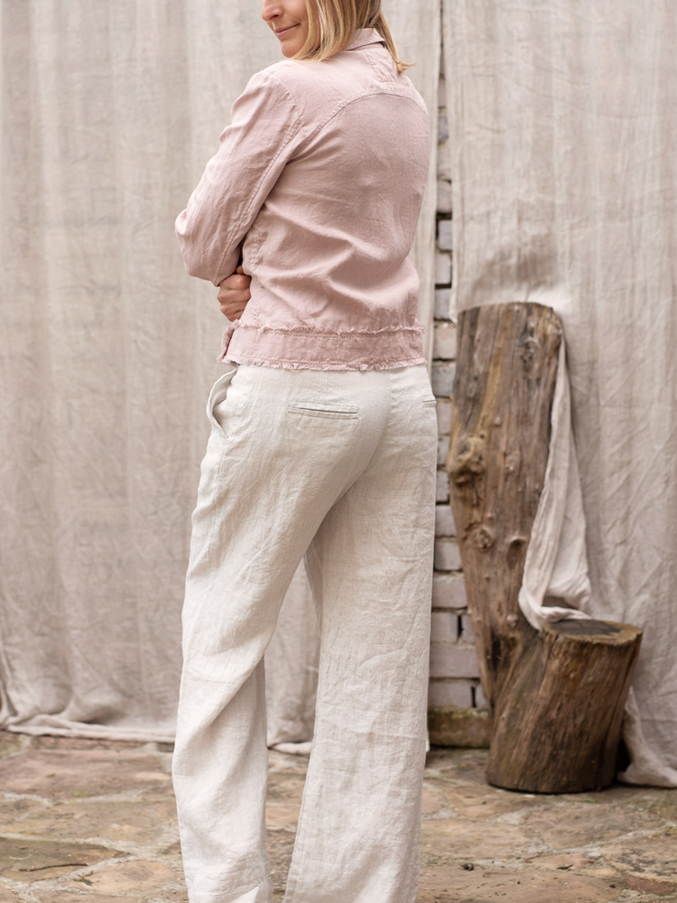 - len można prasować w wysokiej temp (200st.C), kiedy materiał jest lekko wilgotny lub cieszyć się jego unikalną teksturą, z jego naturalnymi zgnieceniami i drapowaniami.