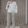 Lniane wyroby są przewiewne i miękkie dzięki lnianej tkaninie. Prane po uszyciu i gniecione dla maksymalnej miękkości.