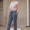 Lniane spodnie z wiązaniem i kieszeniami ‘Na Guzik i Wiatr