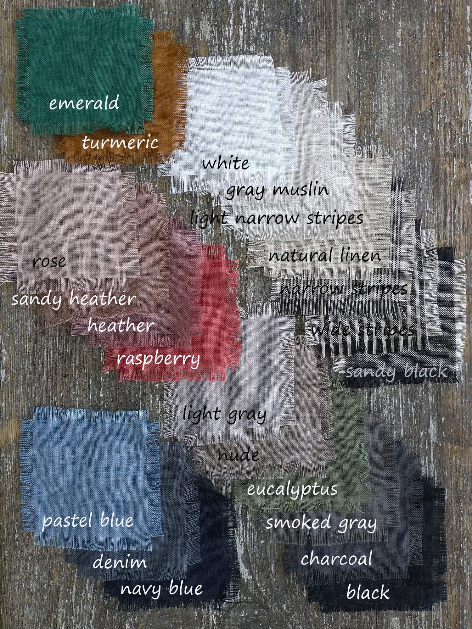 Próbnik kolorów lnu w jakich odszywamy nasze ubrania według załączonego wzornika.